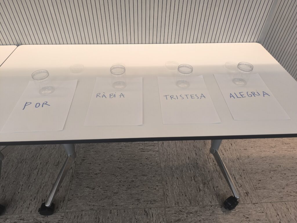 Durant la sessió, vam fer un exercici de consciència per identificar i posar nom a les emocions que ens acompanyen en el nostre dia a dia. Des de l’alegria més radiant fins a la tristesa més tènue, passant per la ràbia, la por o la calma. Identificar l’emoció és el primer pas per aprendre a gestionar-la.